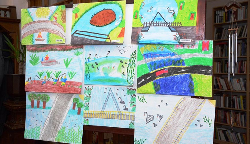 A könyvtár folyosóján kiállításra kerültek az alsósok rajzai, amelyeken sokan az ún. Nagyhíd, a parton ülő horgászok, a csatorna élővilága, különböző vízimadarak, -növények láthatók. Matarugin Elvira, a negyedikesek tanítónője elmondta, az osztállyal minden évben részt vesznek a rajzpályázaton.