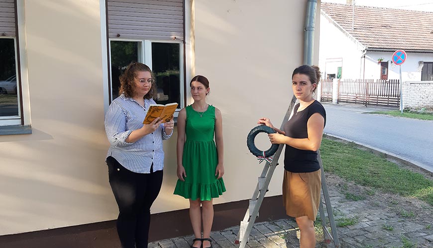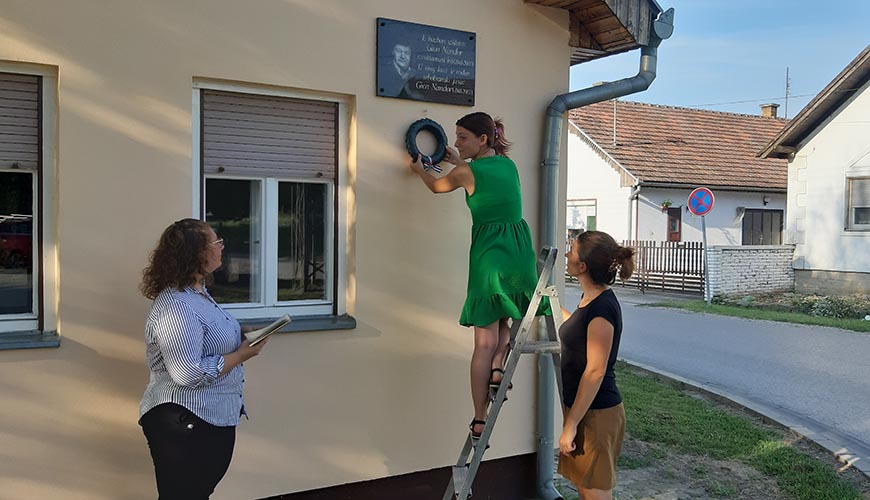 Miközben részletek hangzottak el a legolvasottabb, 1977-ben megjelent, Kárókatonák még nem jöttek vissza című regényéből, a Gion Nándor Emlékház munkatársai Berecz Gaál Brigitta, Tóth Nikoletta és Szabó Robertina az író halálának 21. évfordulóján megkoszorúzták az emlékházon lévő emléktáblát.