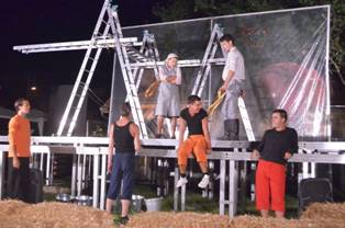 A díjkiosztó ünnepség után a Zentai Magyar Kamaraszínház társulata bemutatta Gion Nándor A kárókatonák még nem jöttek vissza című darabját: ‒ A bemutató az idén májusban volt, azt követően még egy előadást játszottunk, majd a nyári szünet következett. Az őszi évadkezdésünk ez a szenttamási vendégszereplés ‒ nyilatkozta a Tamás szerepét alakító Rutonić Róbert. − Visszahoztuk a kárókatonákat oda, ahol tulajdonképpen megszülettek. Itt írt és alkotott Gion Nándor, az udvarban a színpad mellett áll a kárókatonák fából készült domborműve, száz méterrel arréb pedig a vágóhíd volt, amit a díszlettel megpróbáltunk visszatükrözni a darabban. Ettől hitelesebb, elhivatottabb és igazibb előadást el sem lehet képzelni, hiszen ez az udvar maga a gioni világ, az itt folyó Krivaja, a nád a mocsaras vidéket hozza vissza, és talán ezek az autentikus színhelyek azok, amik a legjobban megfogják, úgy a színészt, mint a nézőt.